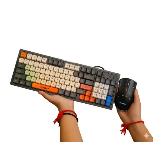 El combo perfecto para renovar el setup. Un teclado robusto con estética keycap multicolor y un mouse ergonómico de alta precisión, diseñados para ofrecer estilo y rendimiento en cada partida o jornada de trabajo.